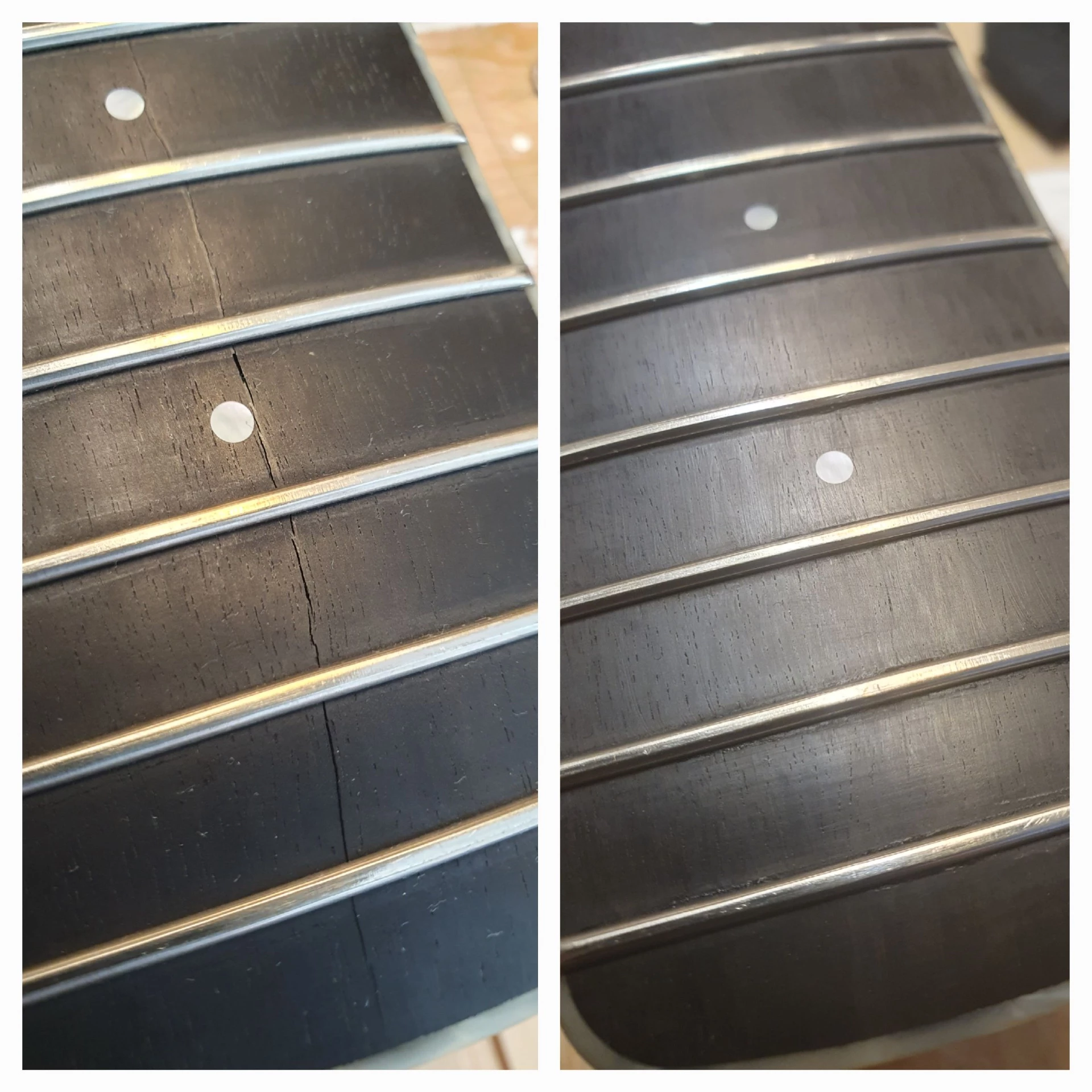 Lagning av spricka i ebenholtzbrädan